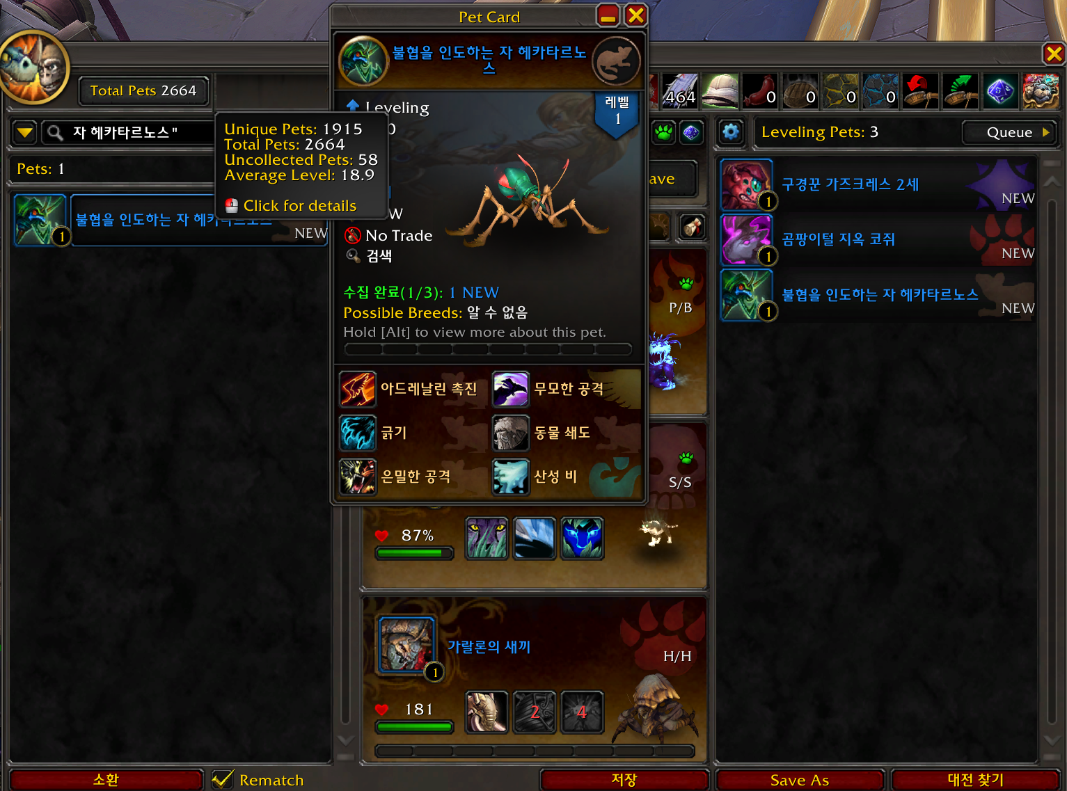 불협을 인도하는 자 헤카타르노스 애완동물은 내부전쟁 확장팩 애완동물로
