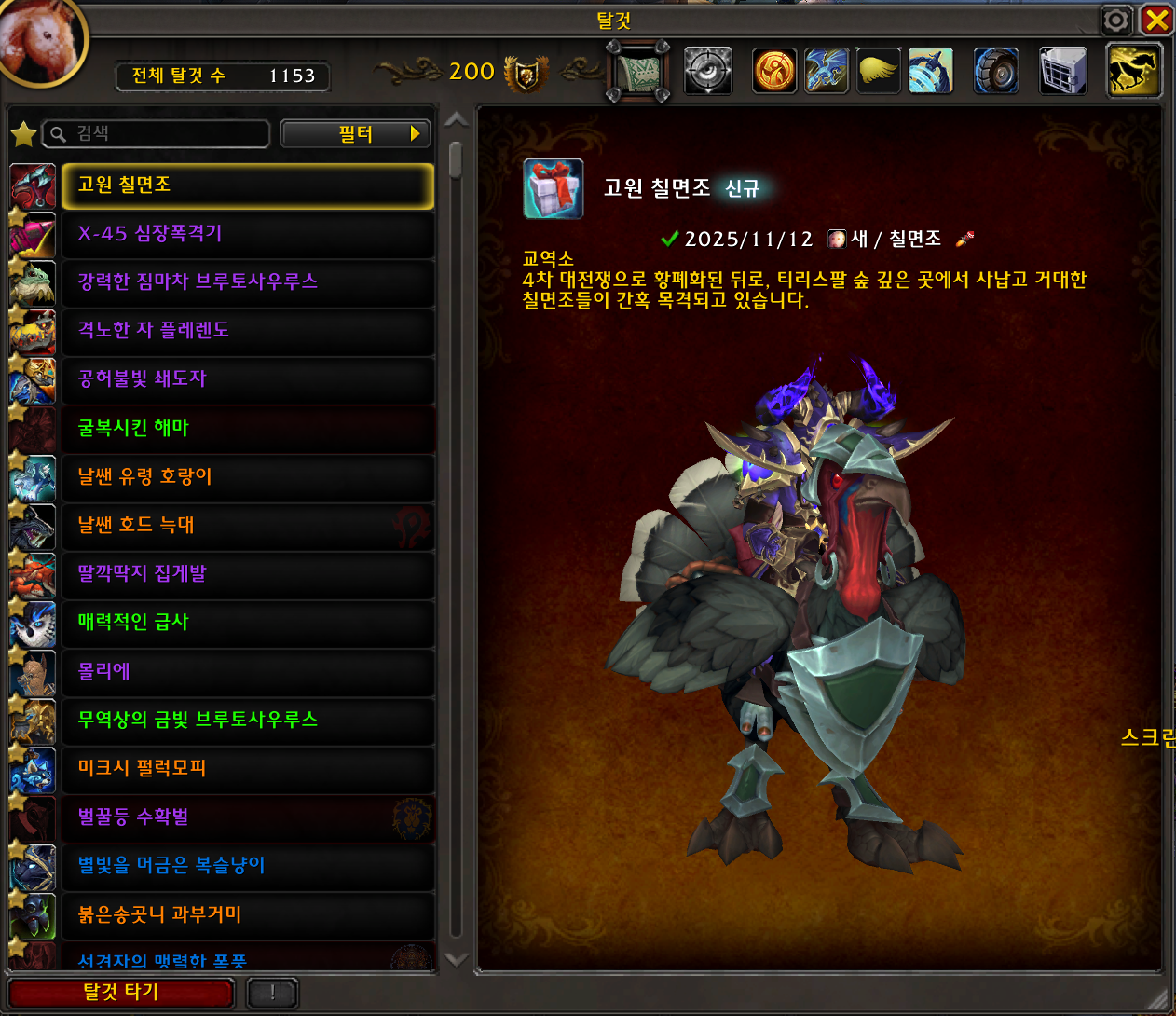 2025.11.12 고원 칠면조 획득 1153번째 탈것