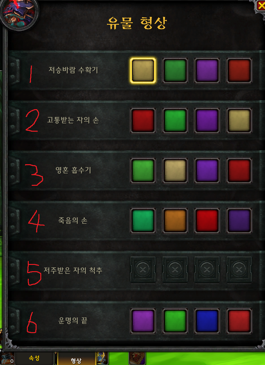 현재 보이는 스샷은 흑마 유물무기인데 이름만 다르고 다른직업도 전부다 같습니다.