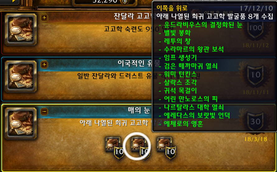 군단 현역당시 마탑룩 라인입니다. 군단때 마탑 클리어를 하지않았다면 획득이 불가능합니다. 현재 활성화되어 있는 마탑으로는 획득이 불가능합니다. 저도 몇개밖에 없고 당시에 36특성 전부다 마탑 유물무기룩을 따놓지 않은것이 현재까지 후회하고있습니다.
