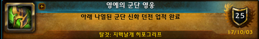 | [와우정보]수집품과 업적 전부완료 - 군단리믹스 중간후기 및 팁 (0) | 2025.10.30 |