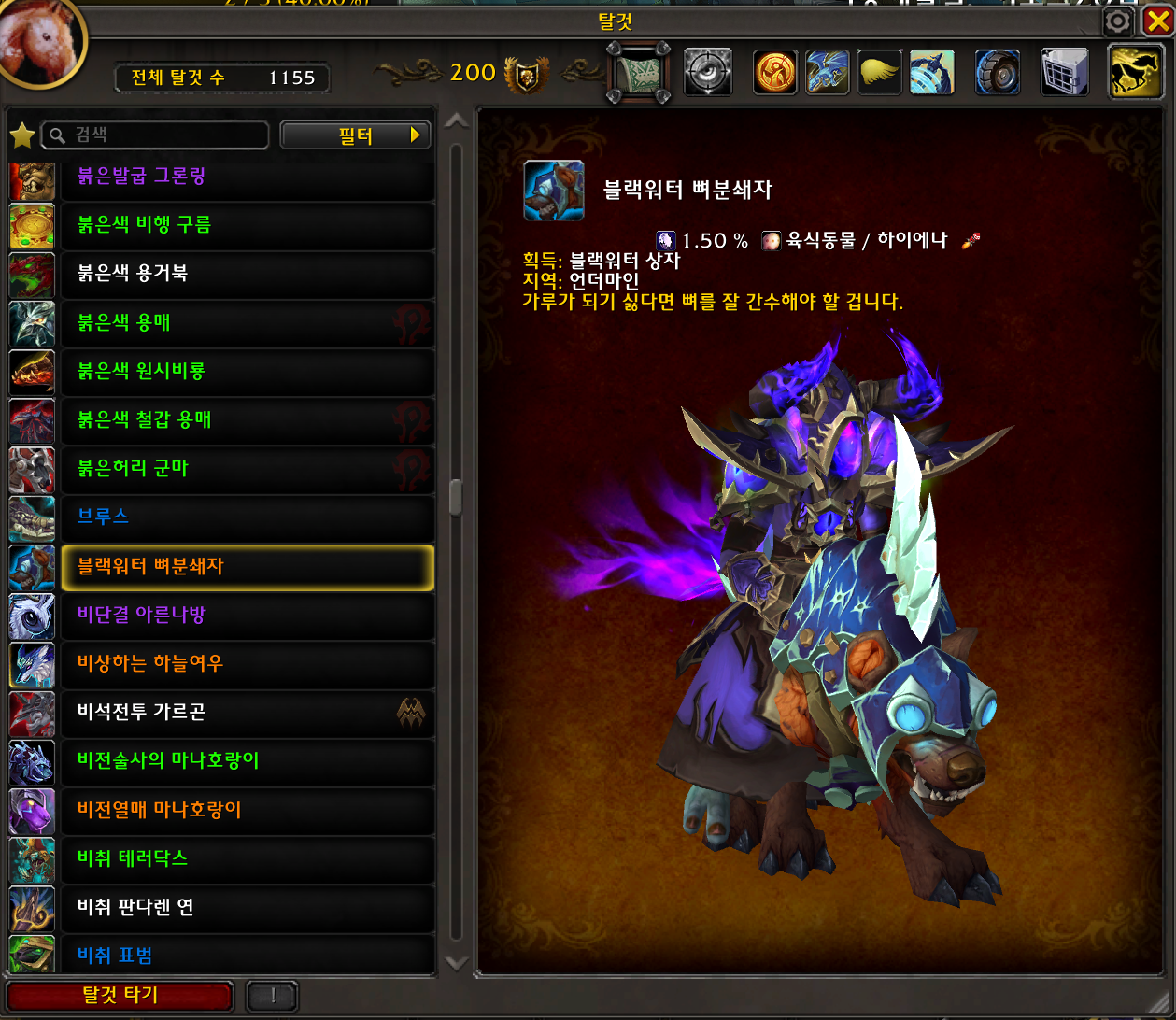 2025.11.19 블랙워터 뼈분쇄자 획득 1155번째 탈것