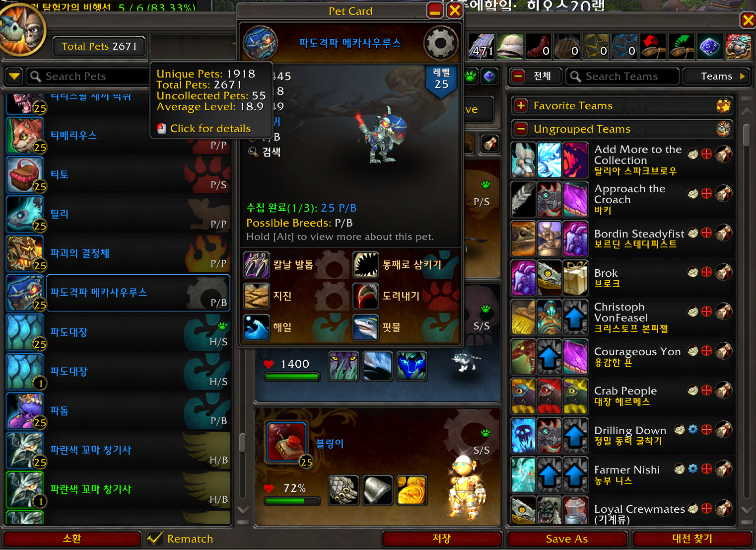 2025.11.19 파도격파 메카사우루스 획득 1918번째 애완동물