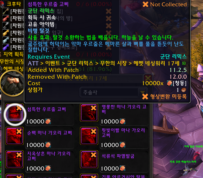 섬뜩한 우르줄 탈것은 군단 리믹스탈것으로 청동으로 구매하는 탈것입니다.