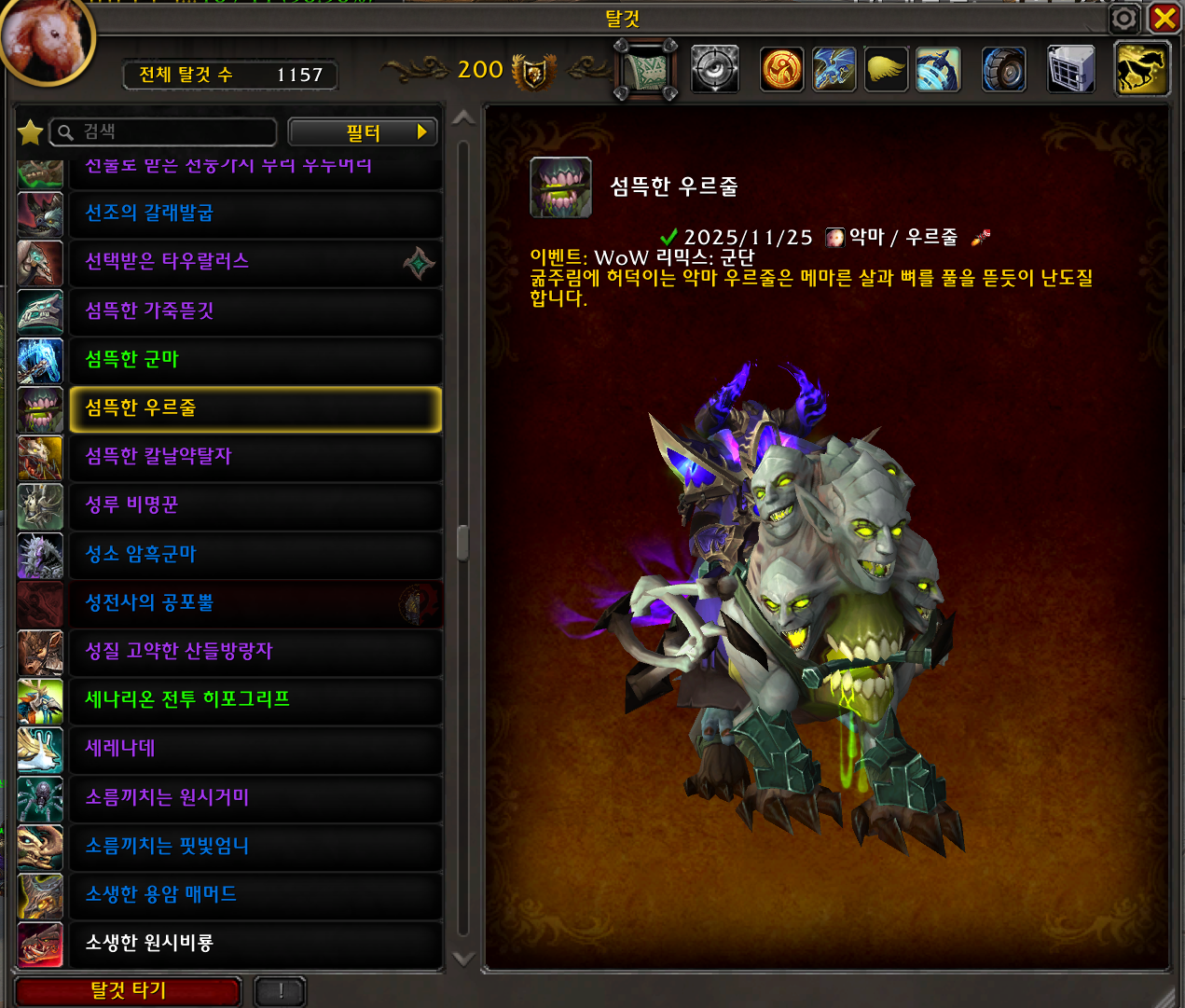 2025.11.25 섬뜩한 우르줄 획득 1157번째 탈것