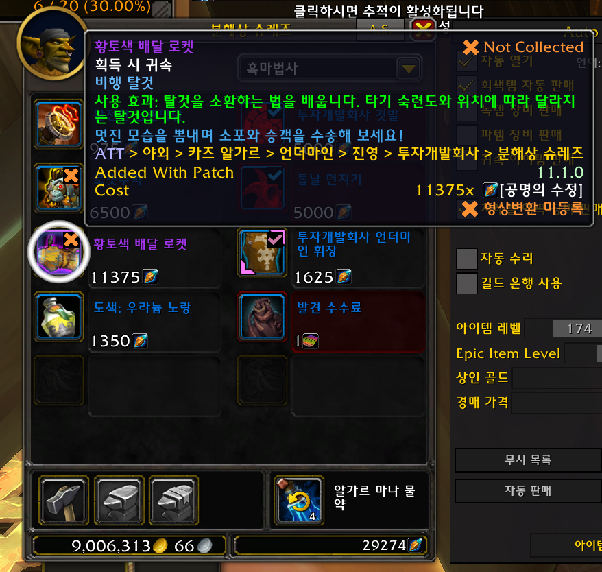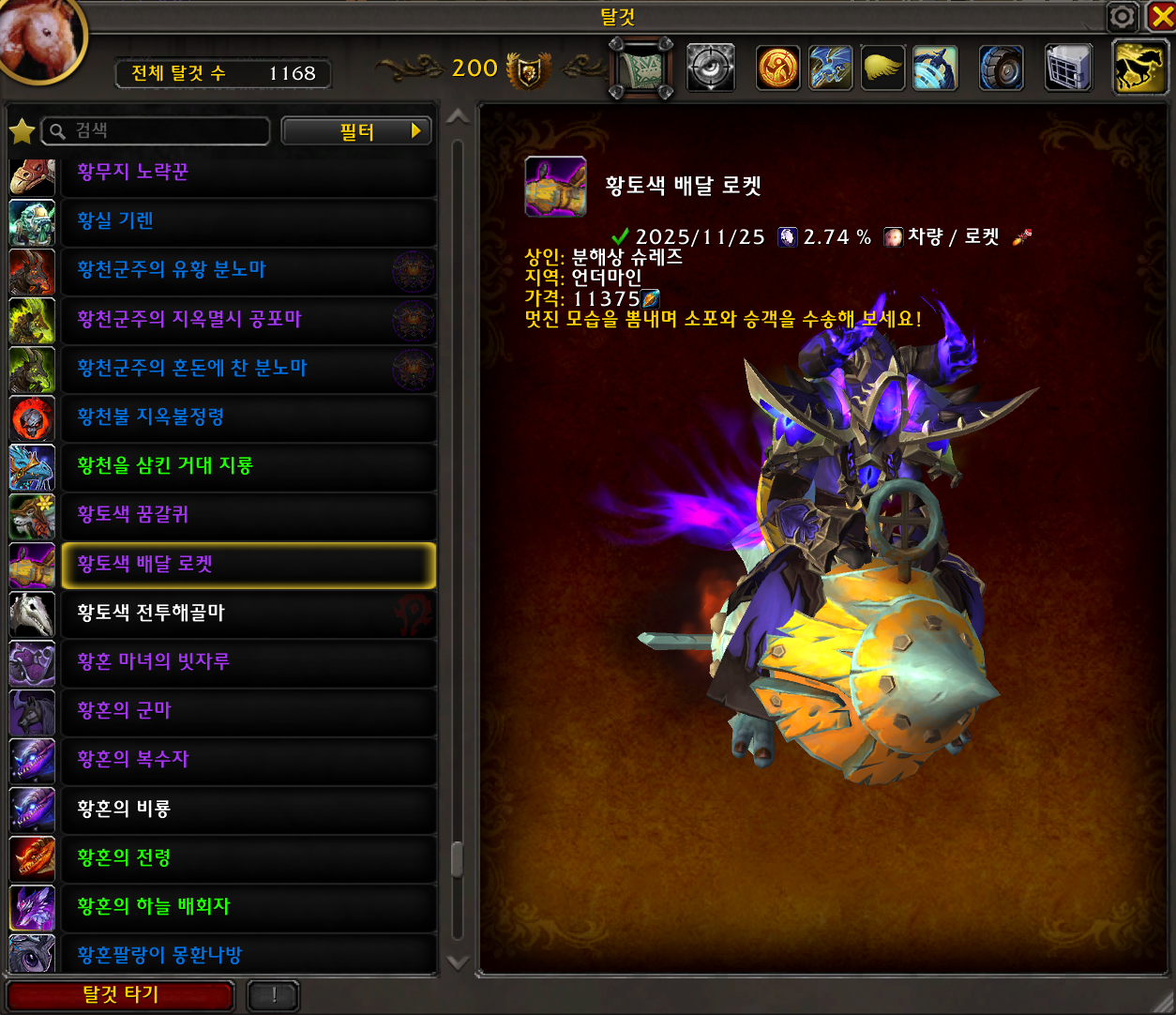 2025.11.25 황토색 배달 로켓 획득 1168번째 탈것