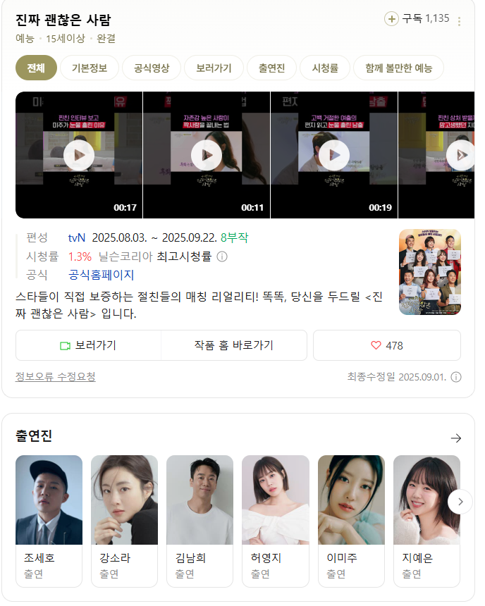 실제 연예인들의 지인이라는 특이함은 있었지만 끝까지 다본후 느낀건 살짝 슴슴했다.