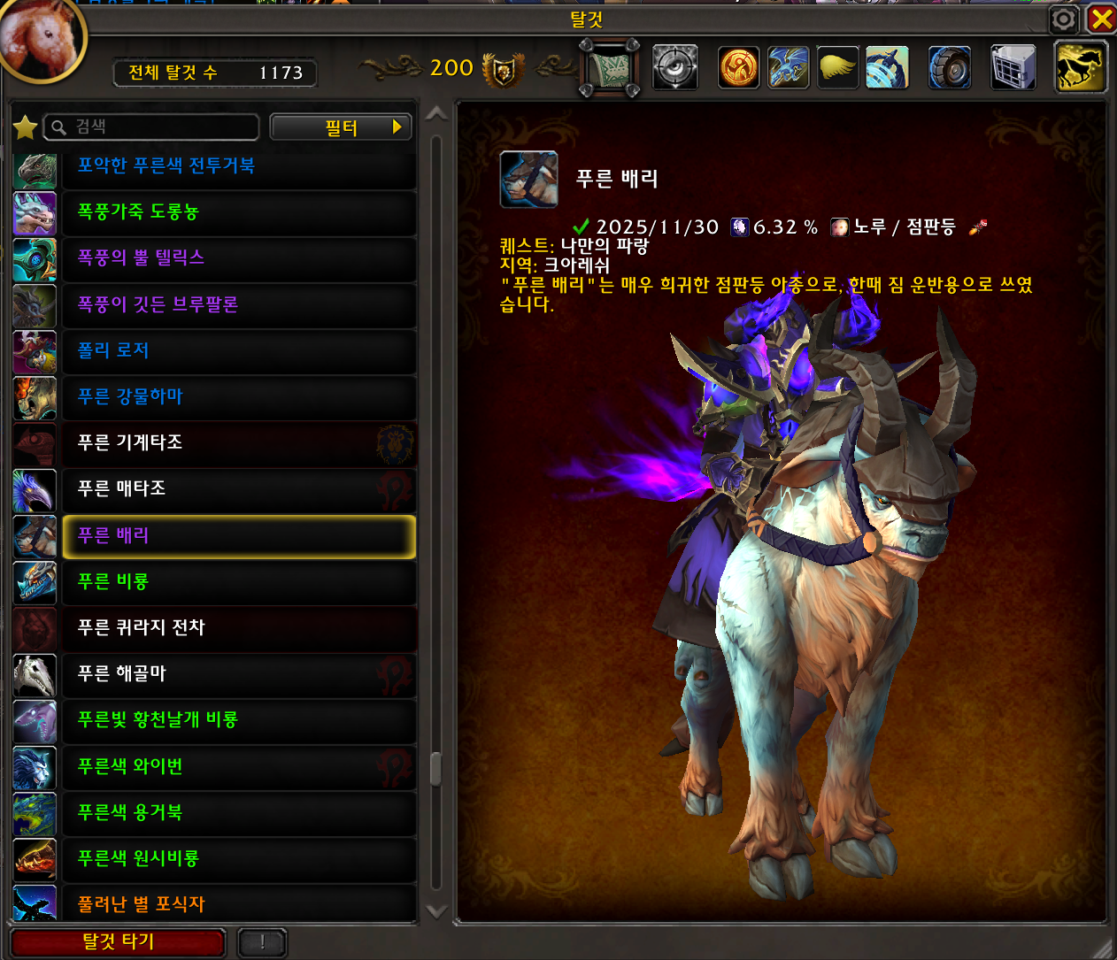 2025.11.30 푸른 배리 획득 1173번째 탈것