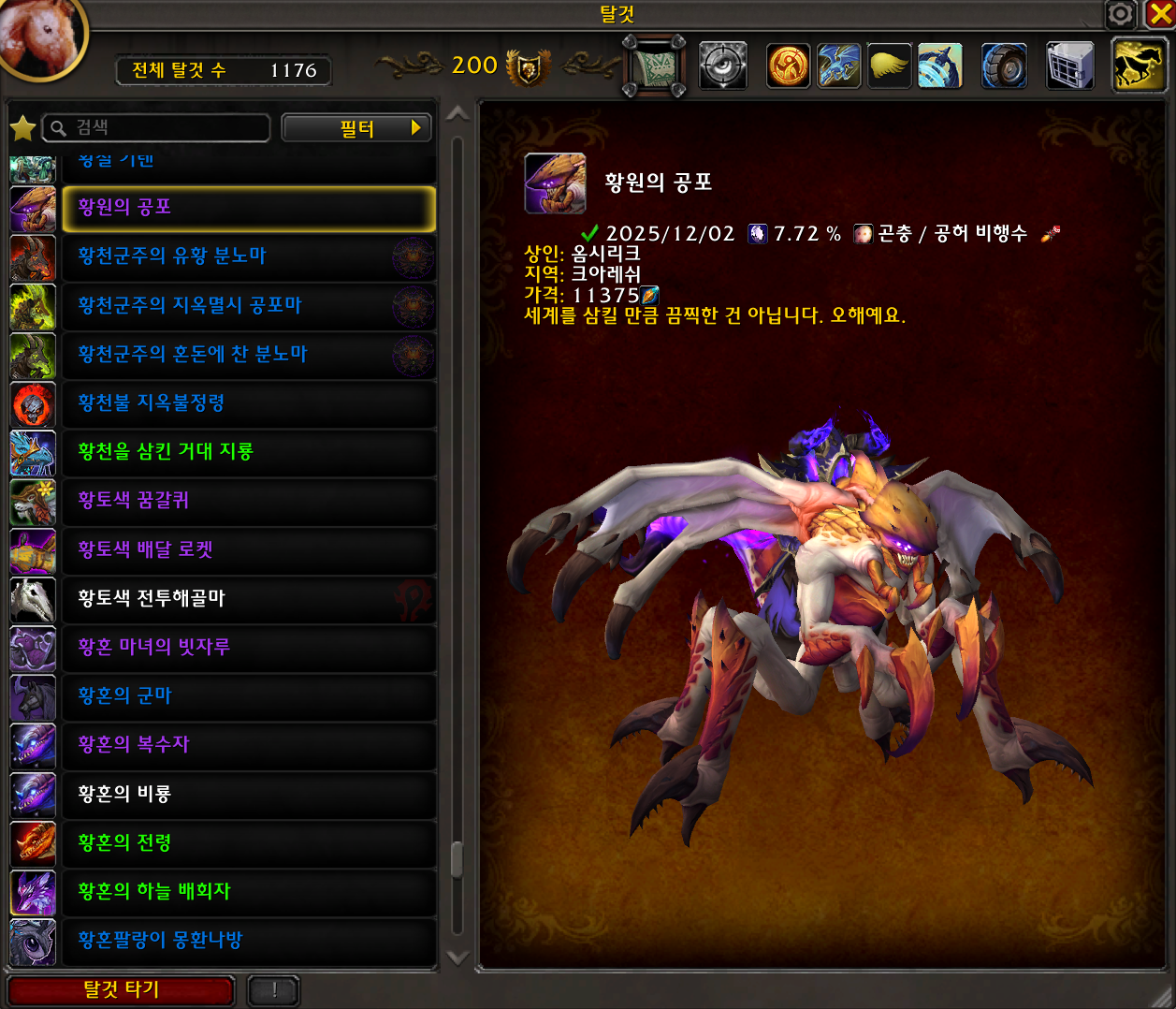 2025.12.02 황원의 공포 획득 1176번째 탈것