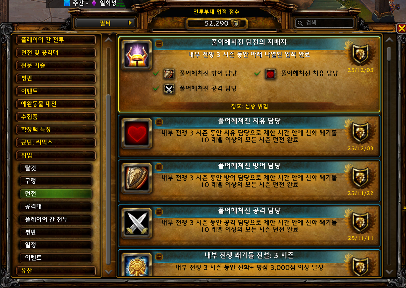 풀어헤쳐진 던전의 지배자 업적은 내부전쟁 3시즌 위업으로