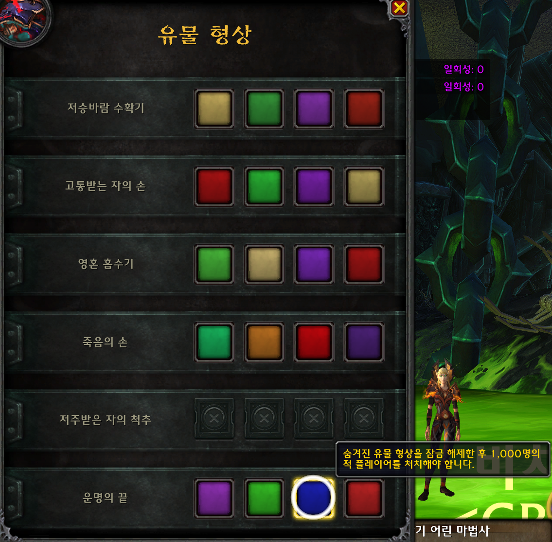 주의사항은 해당캐릭이 히든룩을 먹어야 합니다. 본섭흑마가 히든룩이 있다고 해서 군믹스흑마로 진행해도 1000킬 카운팅이 안됩니다. 참여하는 캐릭이 숨겨진 잠재력 업적을 달성해야 합니다.