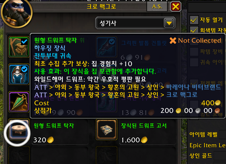 2개 얼라전용 황혼의 고원 /way 48.63 30.59 와일드 해머 드워프 평판필요