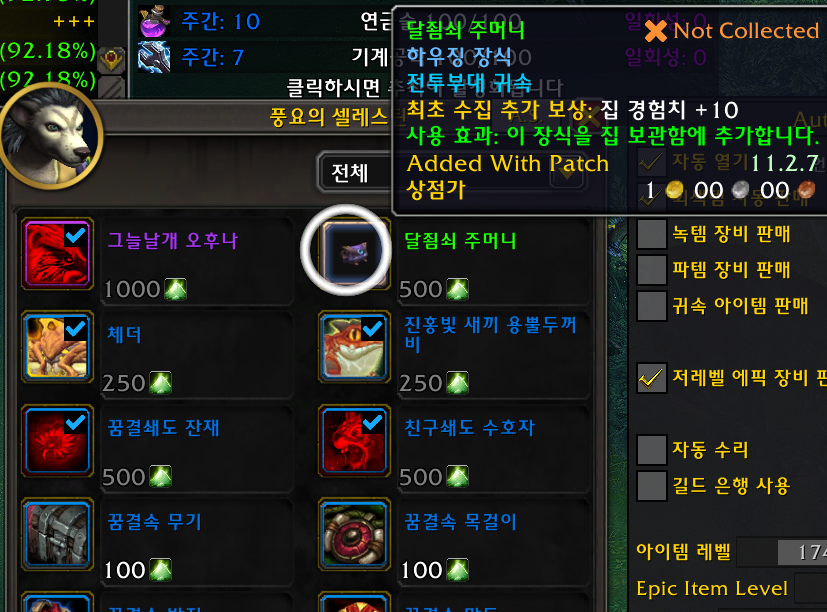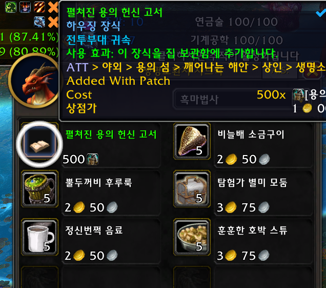 1개 꿈결쇄도 npc가 판매 꿈결쇄도는 지역랜덤으로 발생하기 때문에 위치가 계속변합니다. 꿈결쇄도 응축물 500개필요