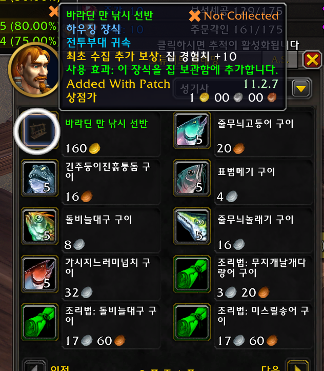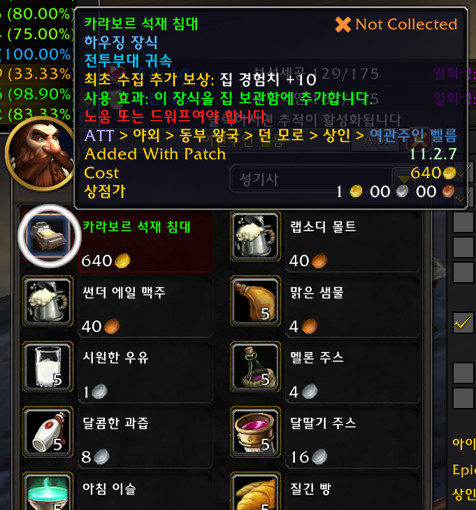 1개 주둔지내에 선술집안(선술집 건물을 지어야함) npc가 판매 호드는 보라 스트롱암 / 얼라는 피터