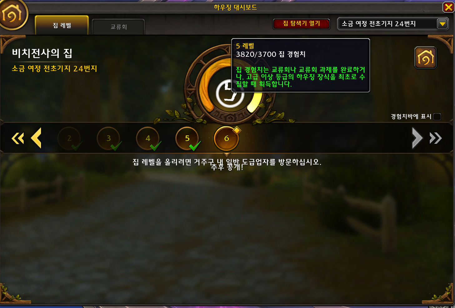 하우징 집레벨은 집 경험치를 꽉체우면 랩업을하고
