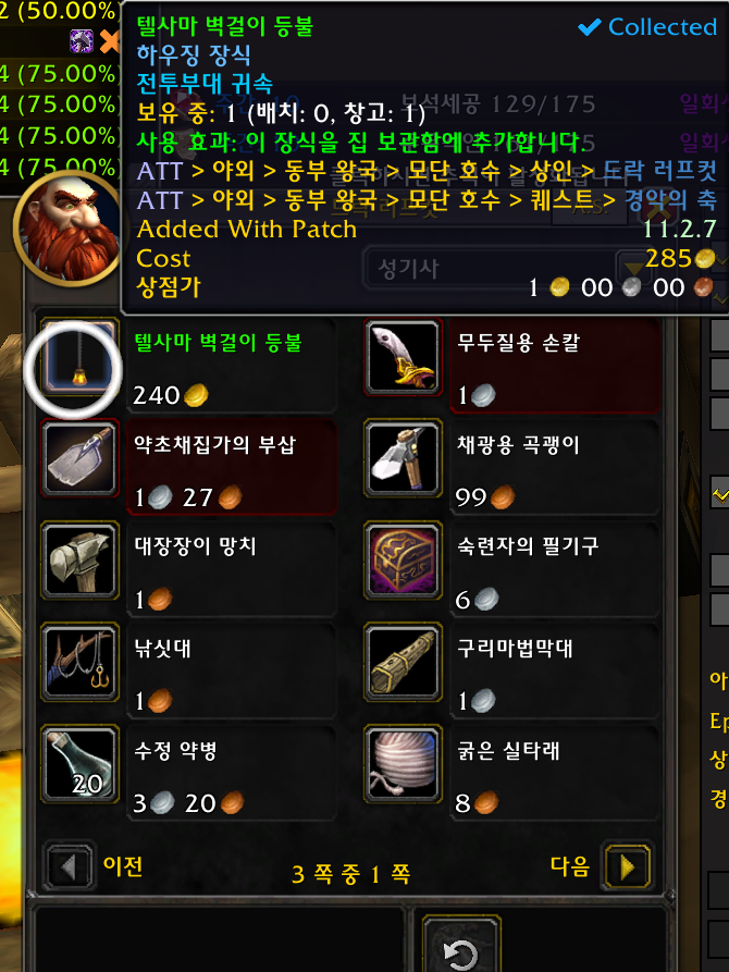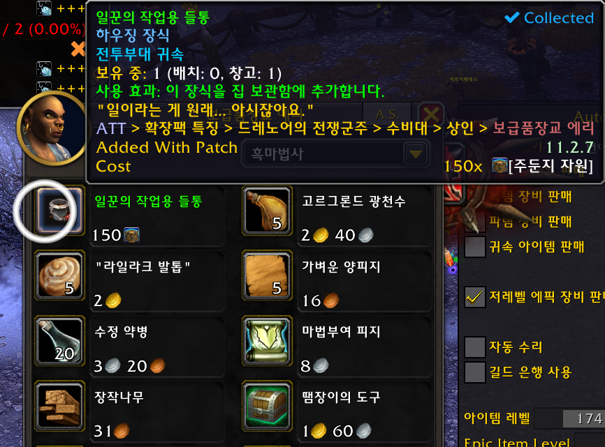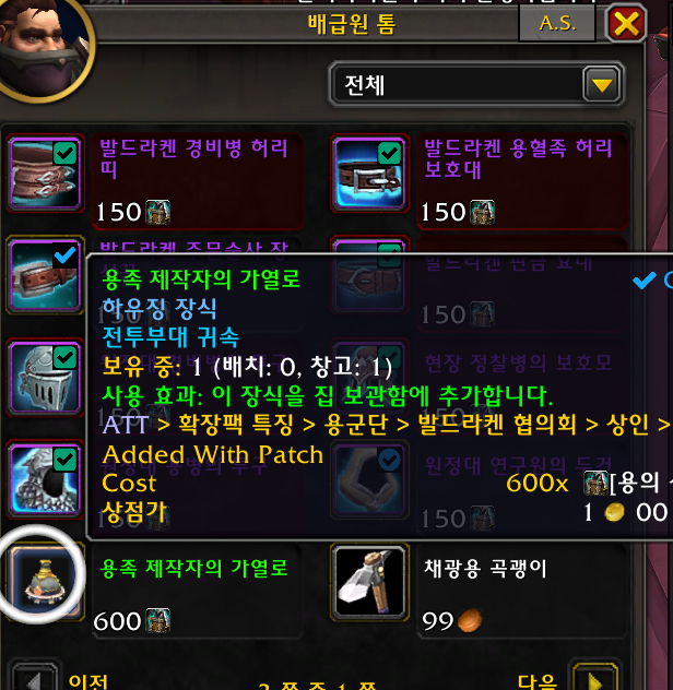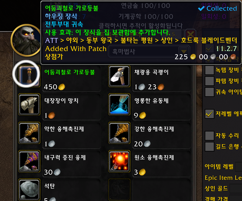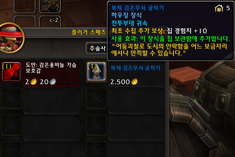 1개 얼라전용 검은무쇠 드워프 종족만 구매가능 검무드 종특 굴착기로 검은바위 나락에가서 선술집으로 이동해서 플러거 스패즈링에게 구매