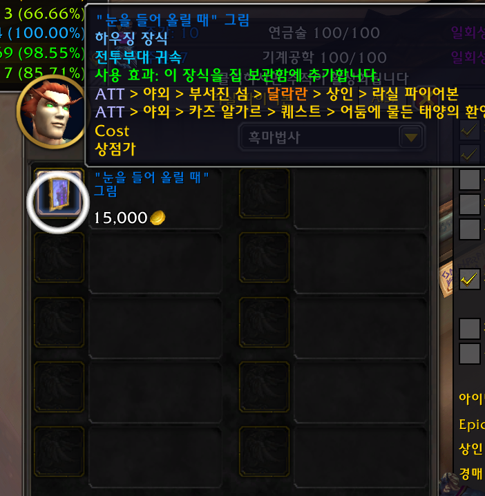 4개 얼라전용 황혼의 고원 /way 49.69 29.62 와일드 해머 드워프 평판필요