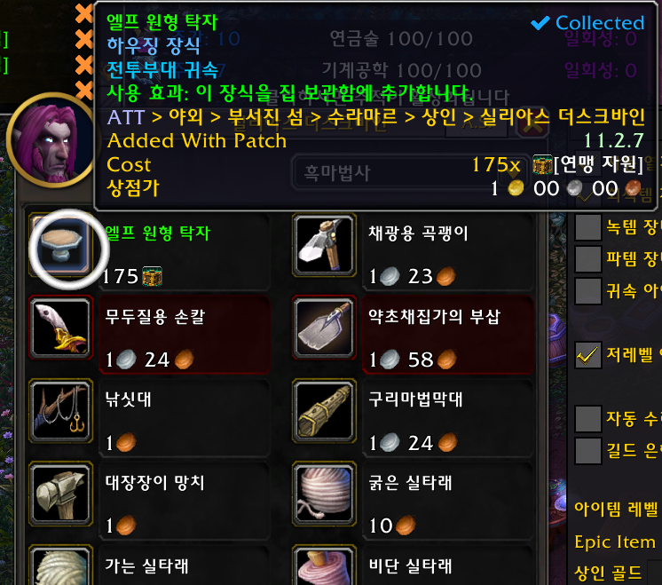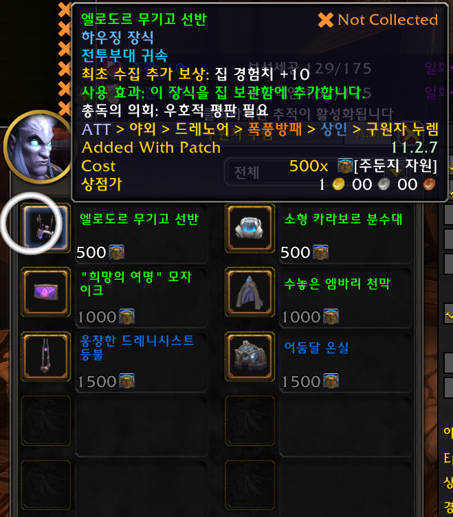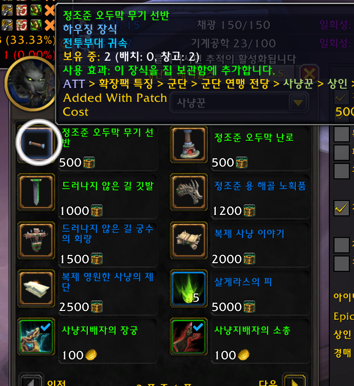 2개 얼라전용 얼라주둔지3단계기준 /way 33.43 48.72 교역소건물2등급 이상필요 /에펙시스수정 필요/ 샤타리수호자 평판필요