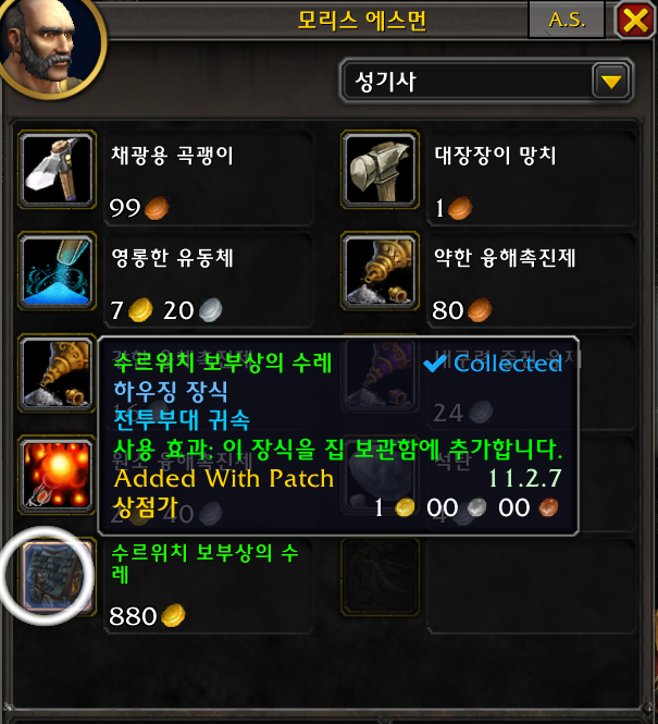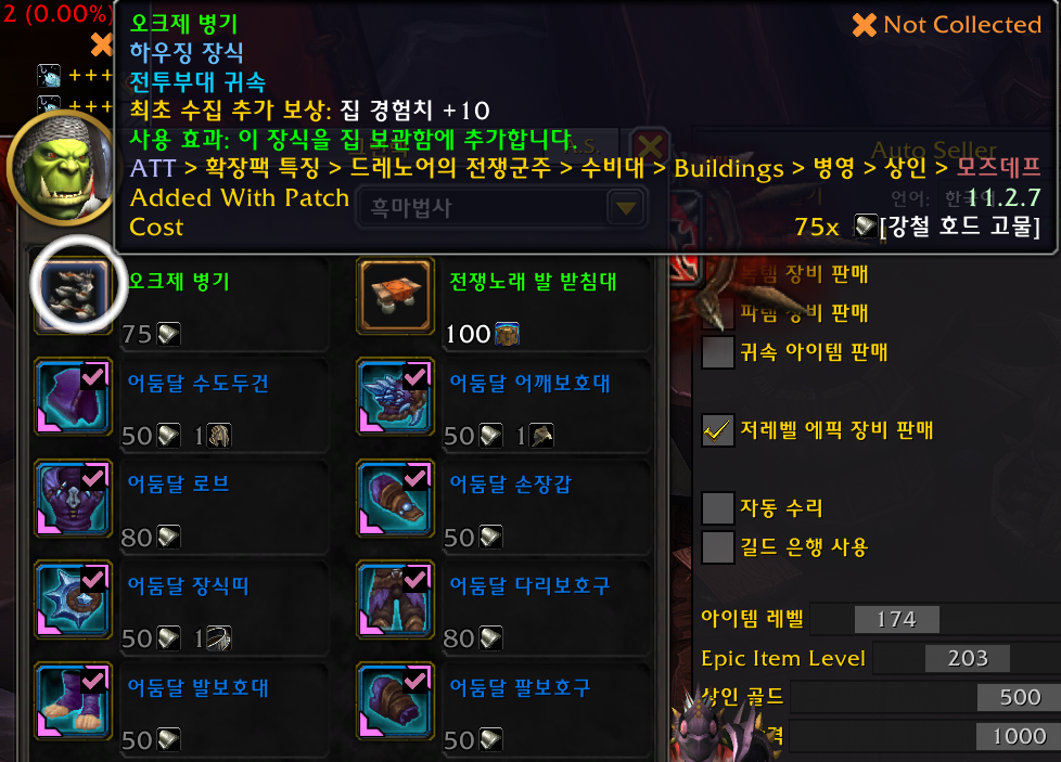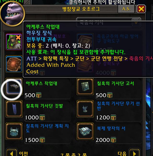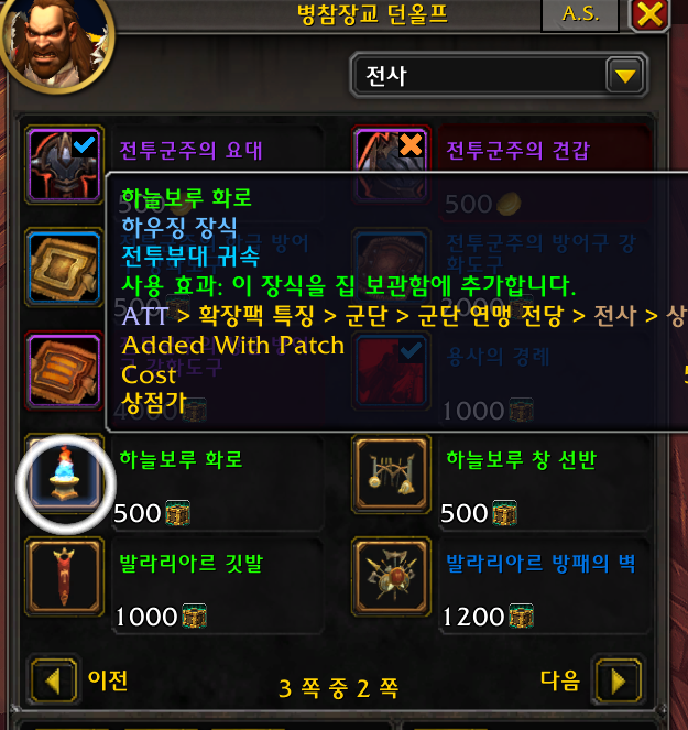2개 호드전용 호드주둔지내에 병영or전쟁준비실 npc가 판매 강철 호드고물 필요(드군던전돌면 획득가능)