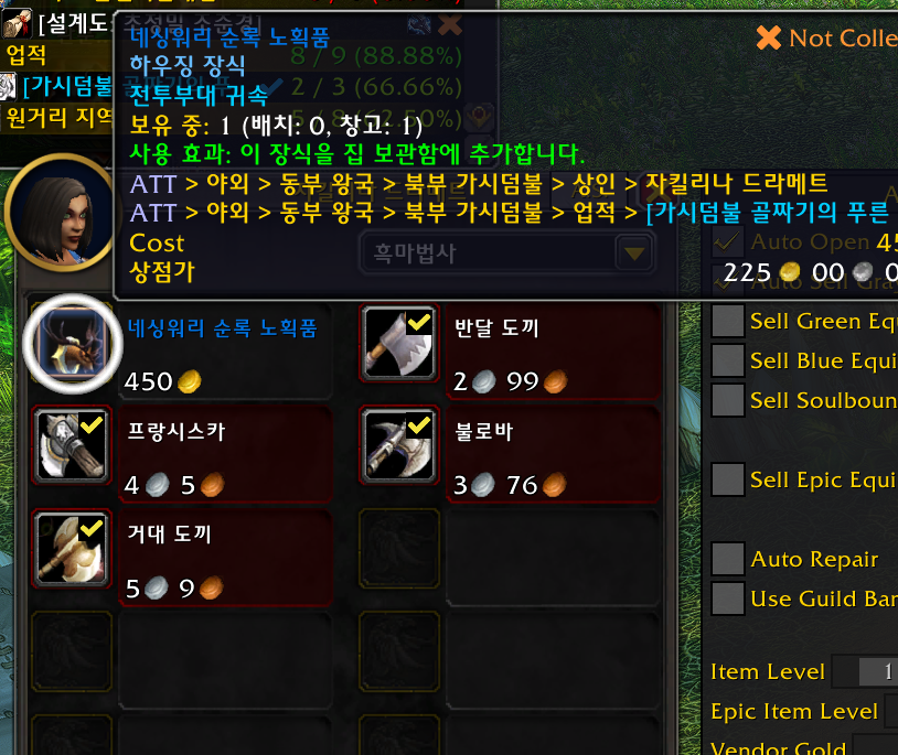 6개 얼라전용 길니아스 폐허 /way 65.29 47.24 늑대인간 종족만 구매가능