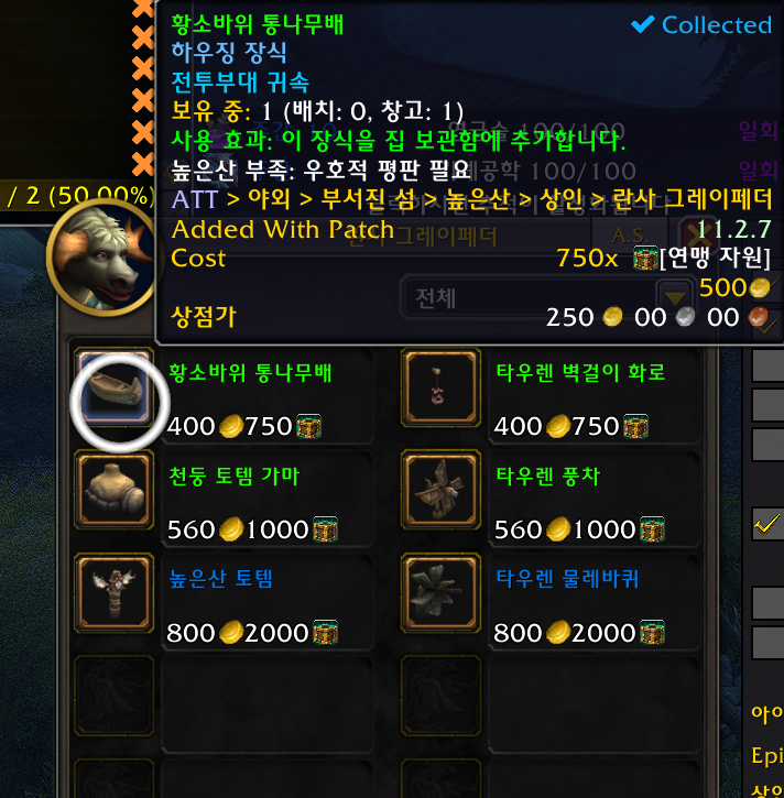 1개 호드전용 썬더 블러프 /way 46.84 50.6