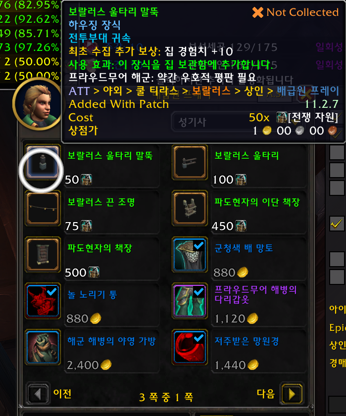 5개 얼라전용 보랄러스 /way 67.65 21.71 프라우드무어 해군 평판필요 전쟁자원필요