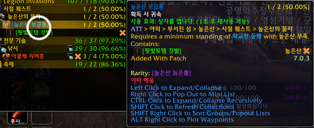 사절퀘중에 높은산 사절퀘가 있을때 전역퀘4개 완료하고 받는 높은산 보급품 상자에서 나옵니다.