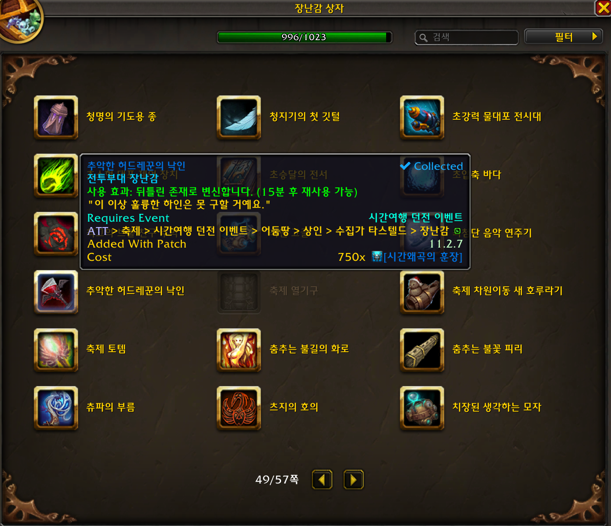 2025.12.11 추악한 허드레꾼의 낙인 획득 996번째 장난감