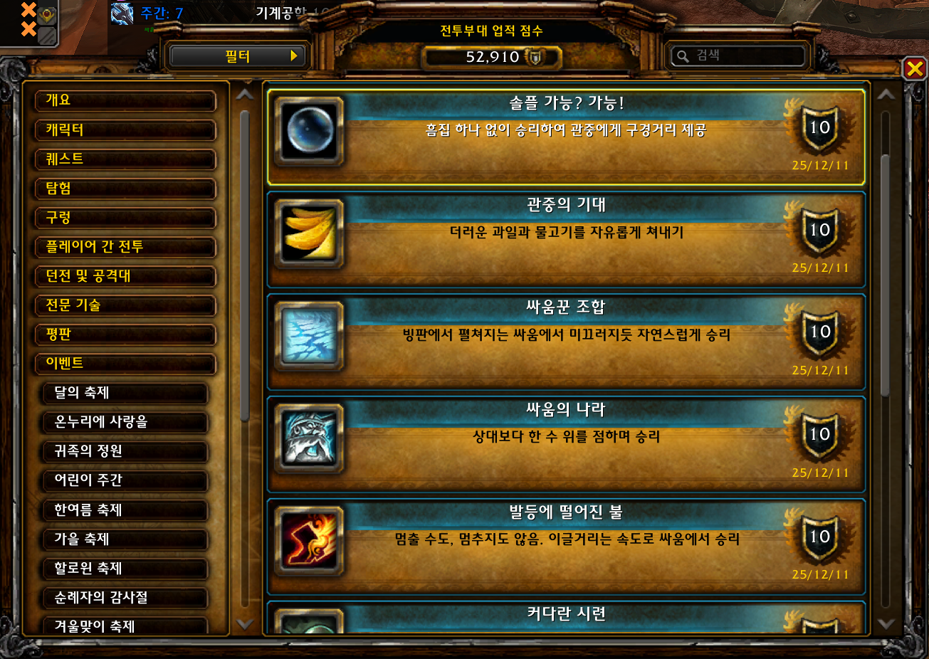 | [와우업적]싸움꾼 조합 (3) | 2025.12.11 |