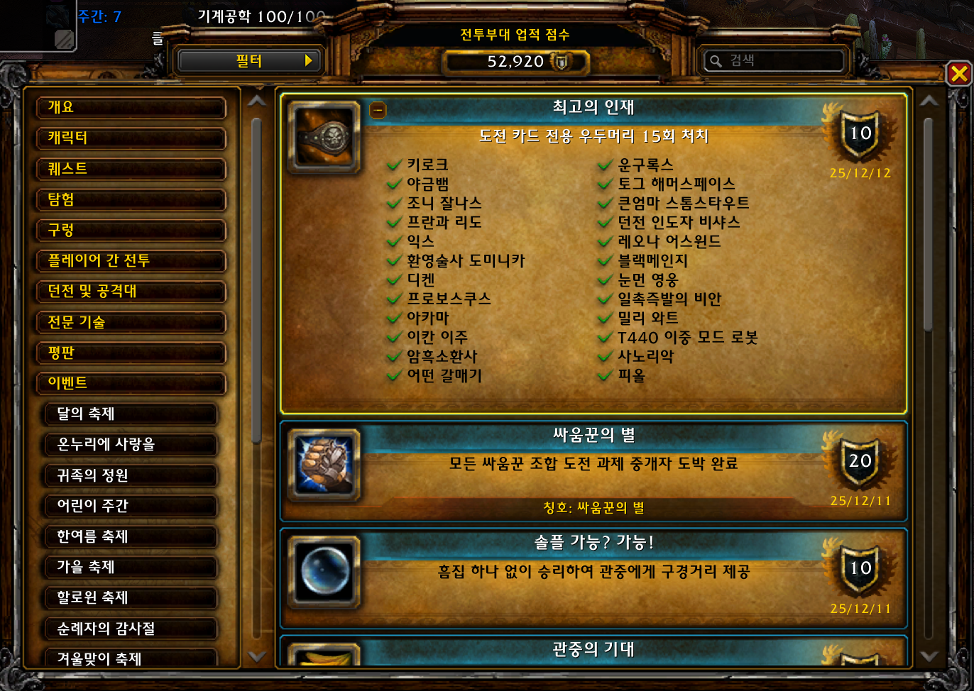 | [와우업적]싸움꾼 조합 (3) | 2025.12.11 |