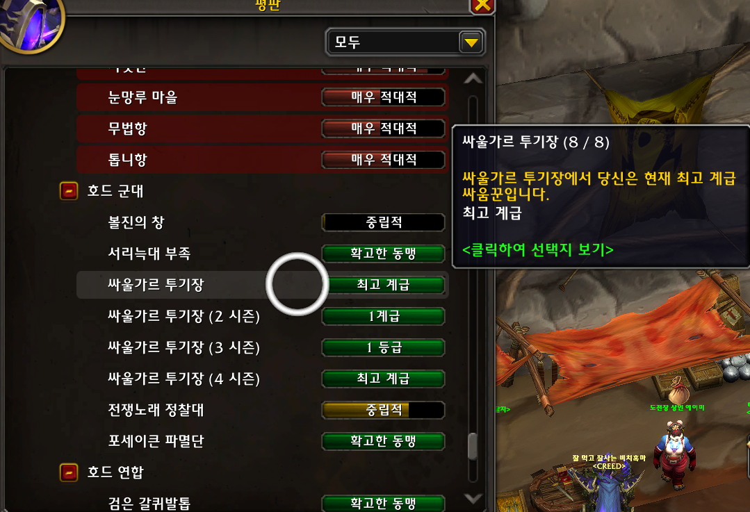 먼저 싸울가르 투기장 8계급이 되어야 할수있는 업적입니다.