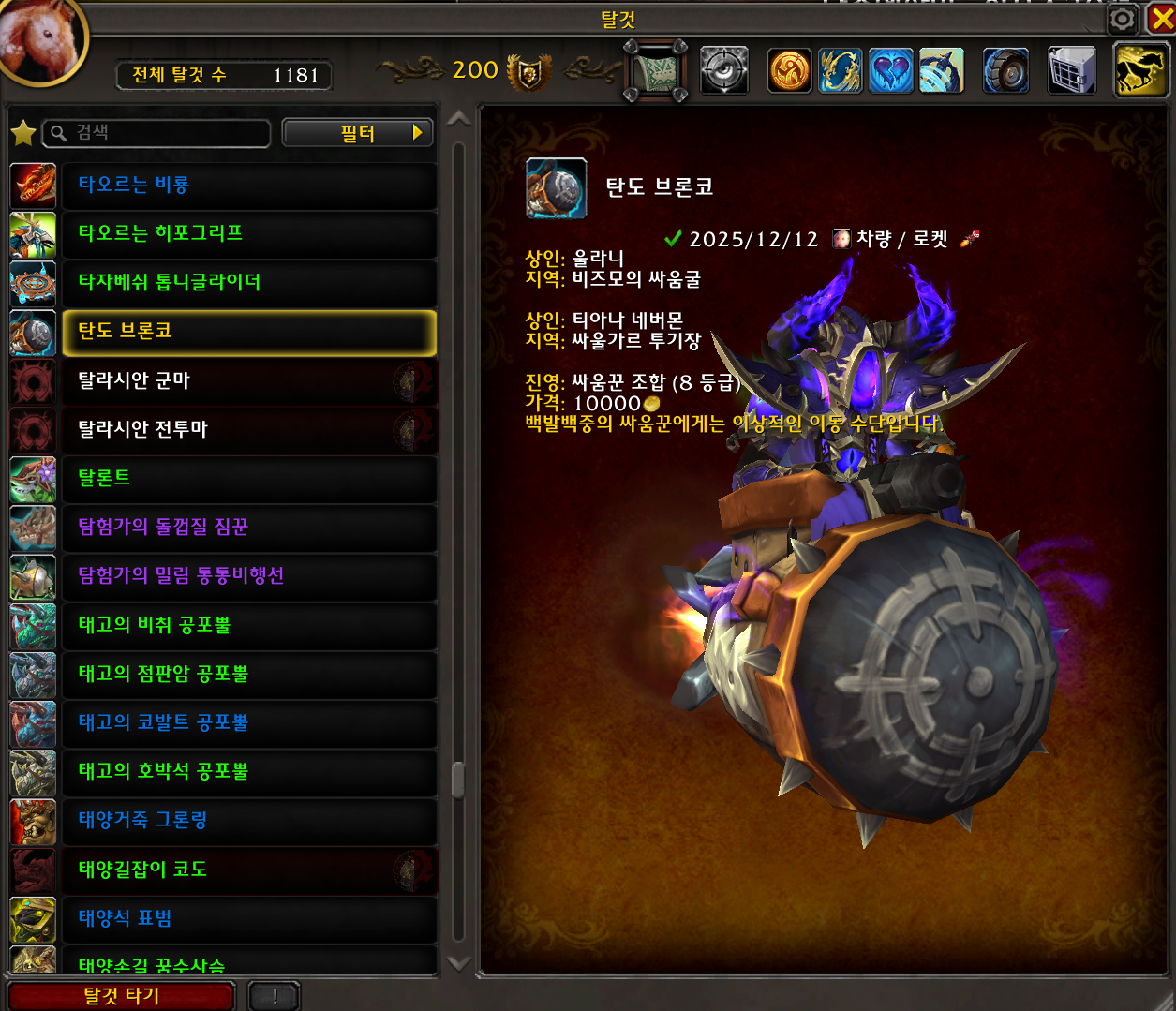 2025.12.12 탄도 브론코 획득 1181번째 탈것