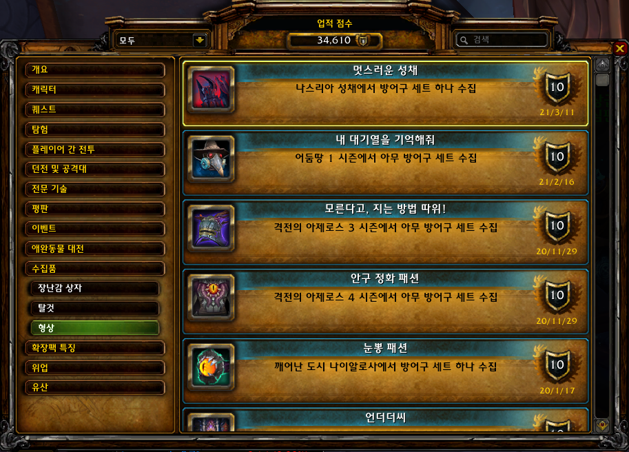 | [와우업적]세트다, 세트! - 어둠땅 2시즌 방어구업적 (0) | 2021.08.04 |