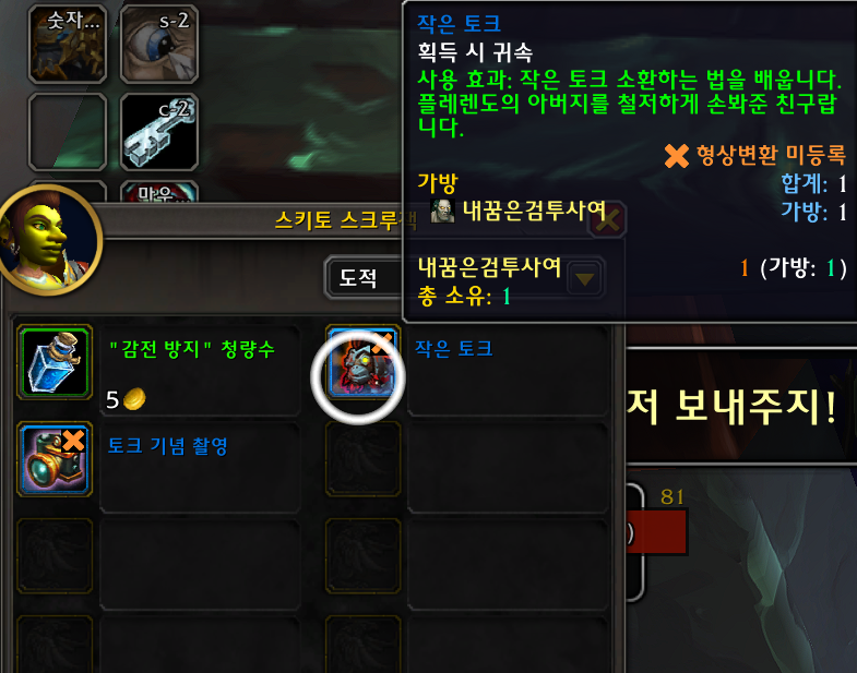 작은 토크 애완동물은 내부전쟁 확장팩 애완동물로 2시즌 레이드안에서 구매하는 애완동물입니다.