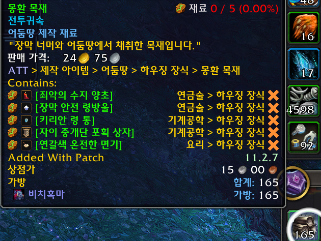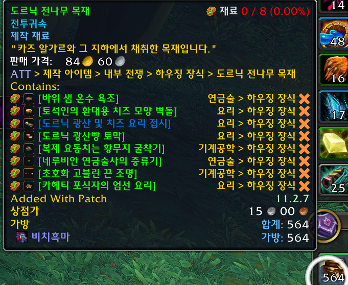 대격변 제작으로 만드는 장식은 총20개로