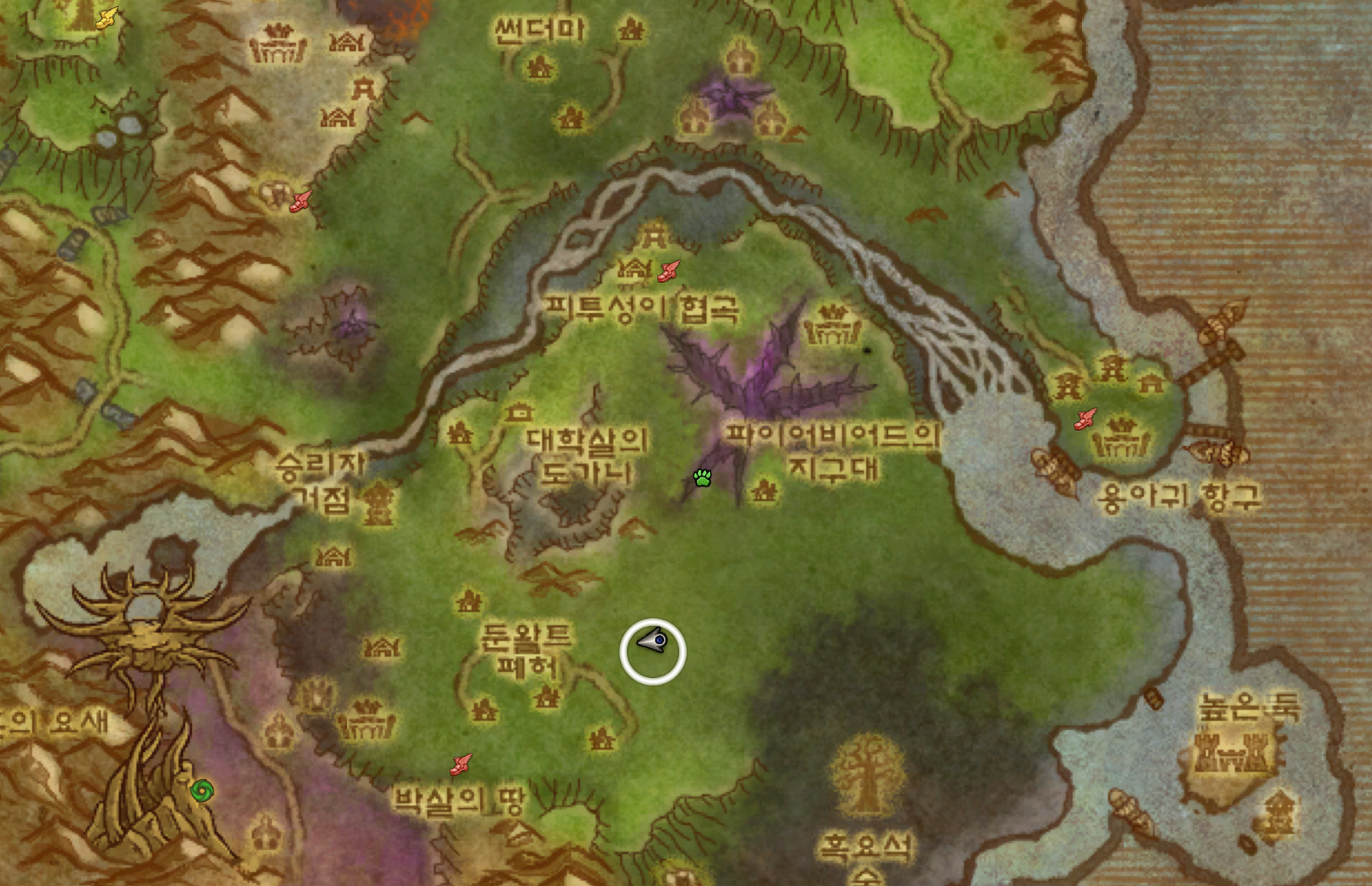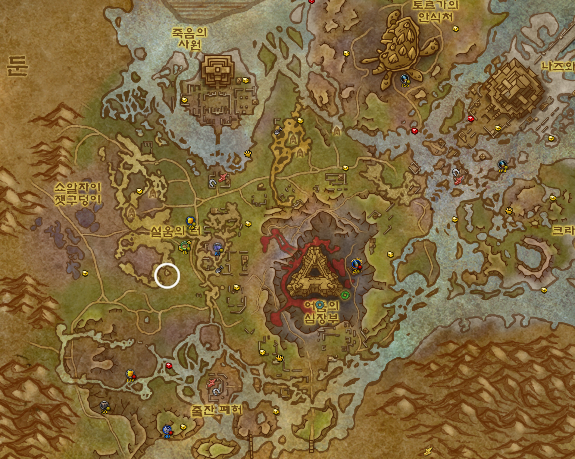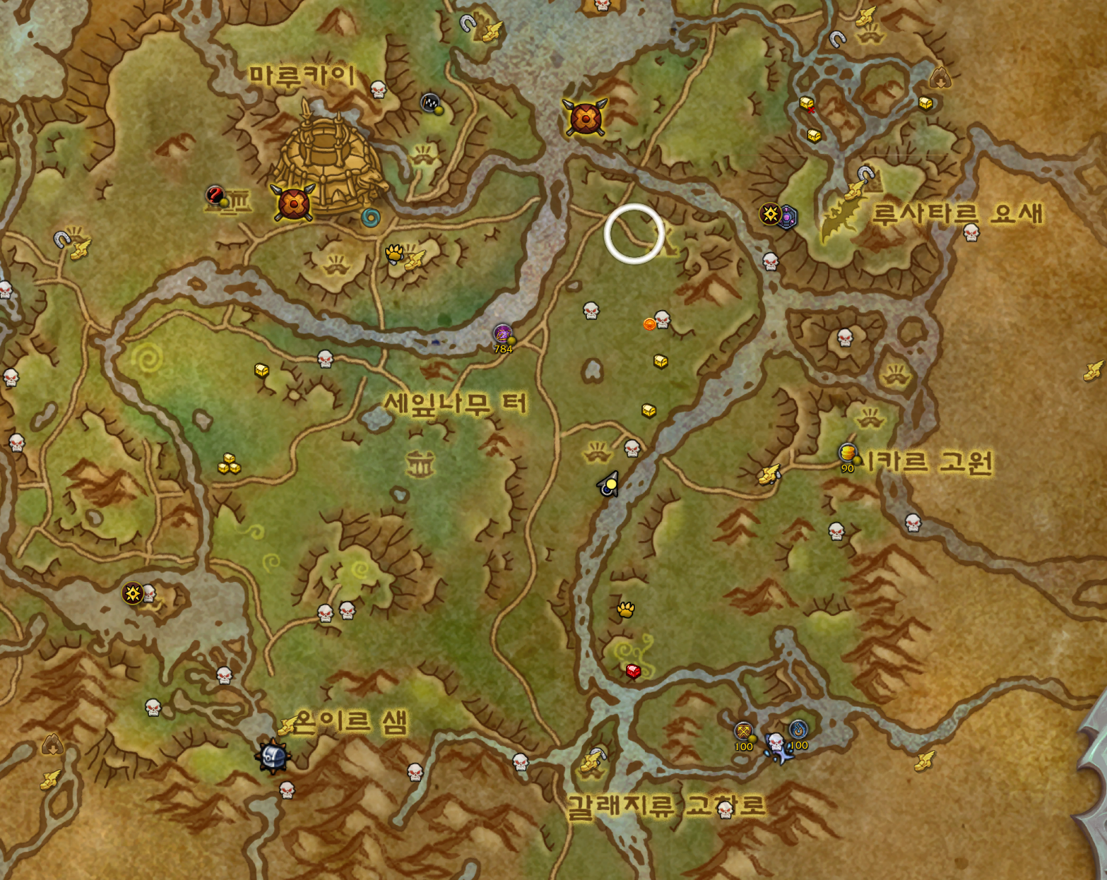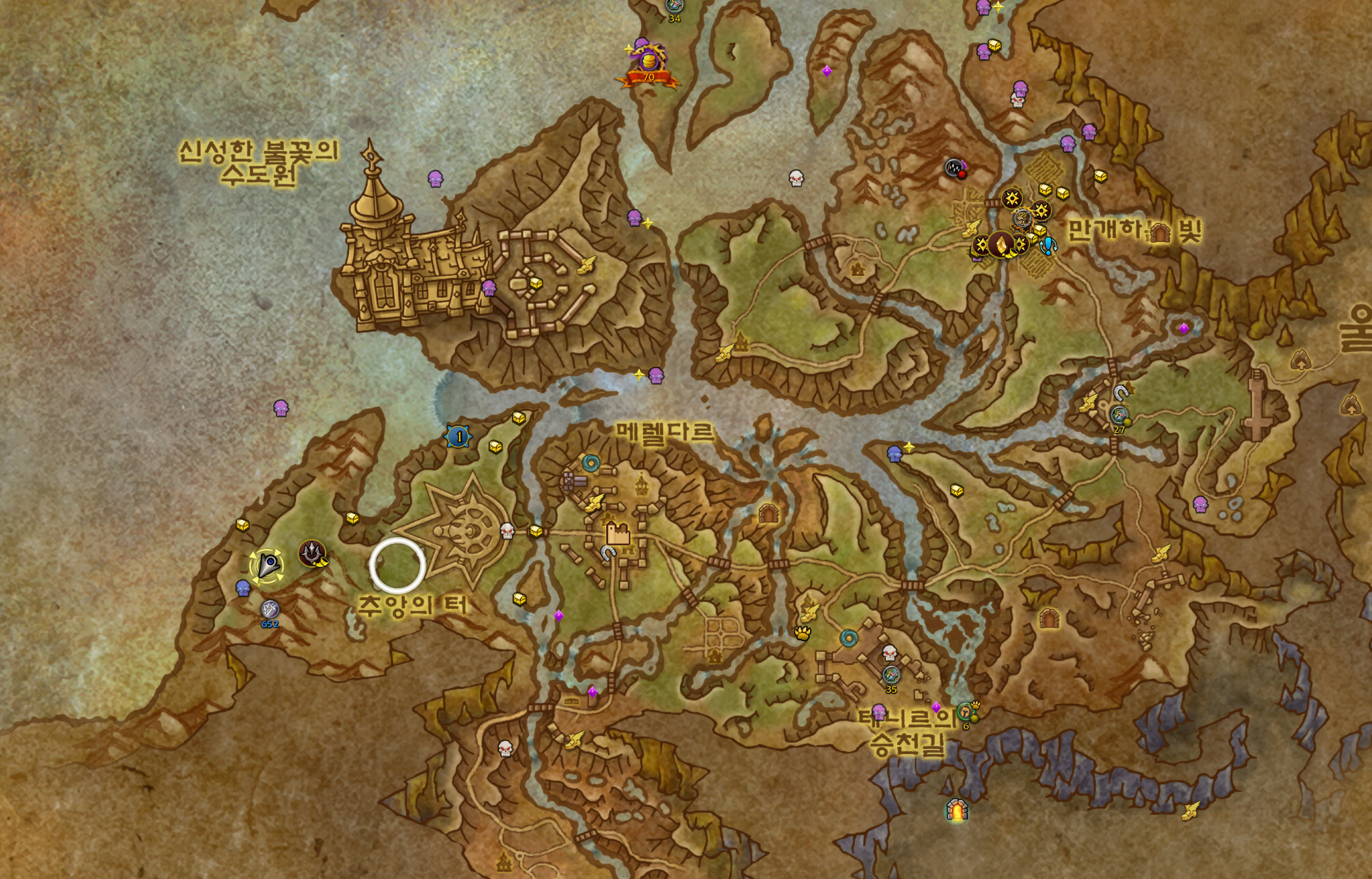 신성한협곡 우측지역에 원으로 게속돌면서 캐는데 많아서 금방합니다.