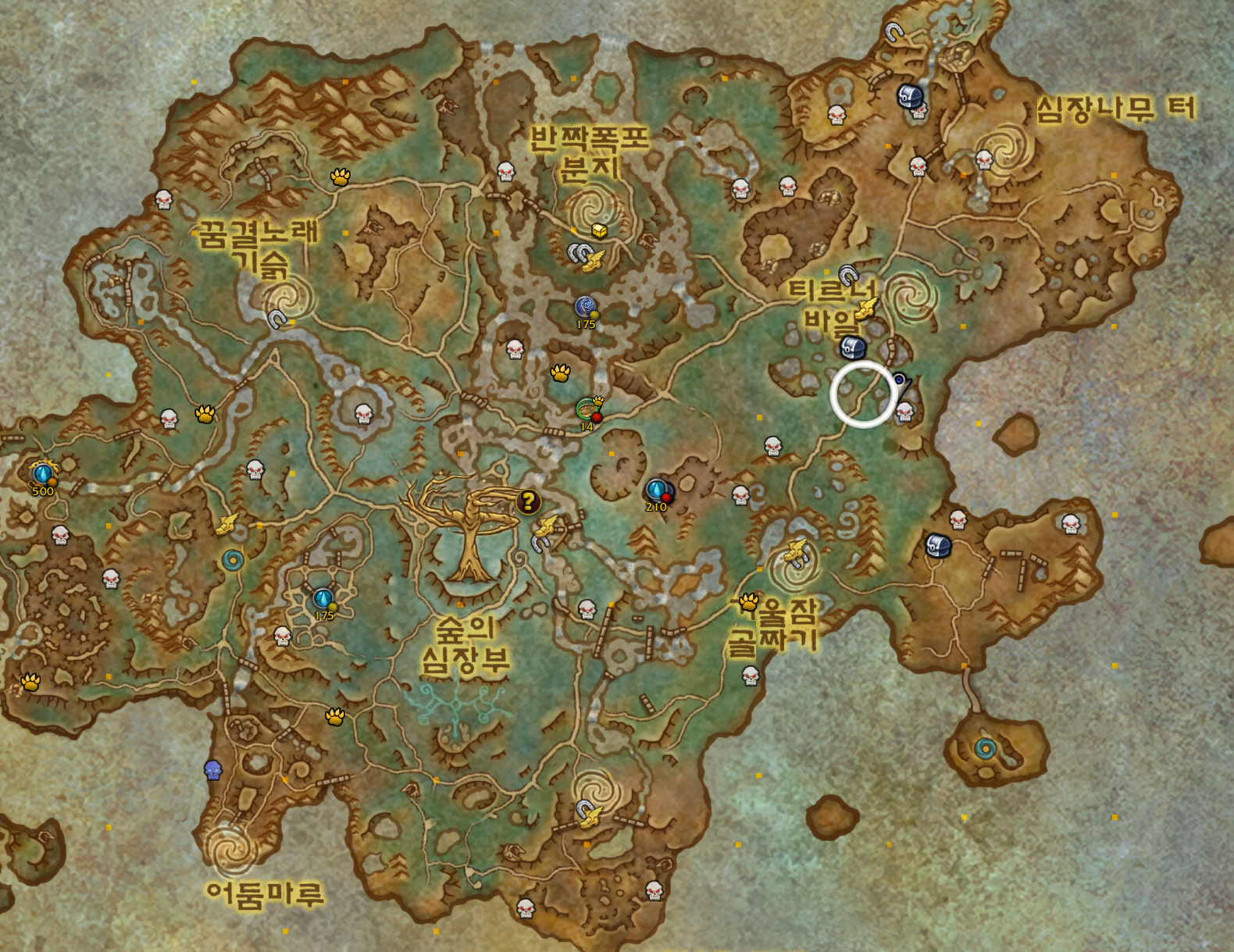 악령숲 위아래 내려갔다 올라갔다 하면서 캐면됨 개체수많음