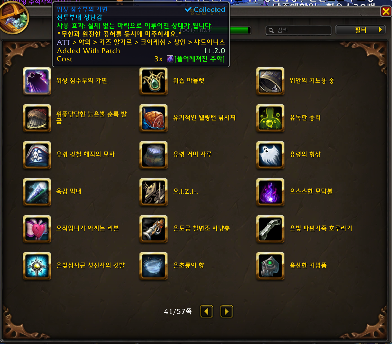 2025.12.15 위상 잠수부의 가면 획득 1001번째 장난감