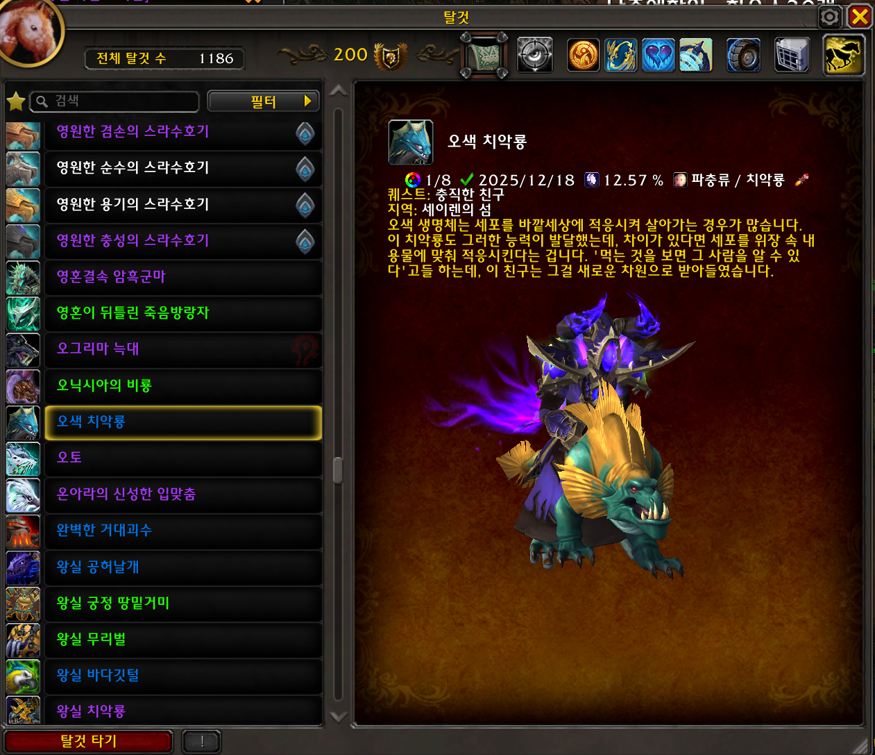 2025.12.18 오색 치악룡 획득 1186번째 탈것