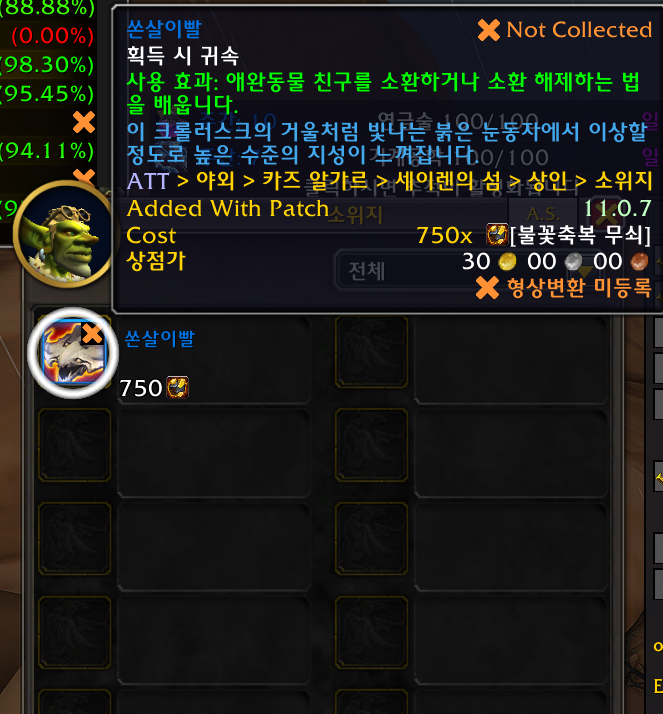 2025.12.22 쏜살이빨 획득 1943번째 애완동물