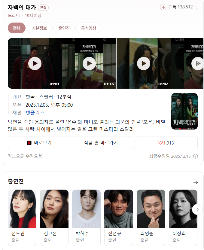 분명 아쉬운부분이 있지만 그래도 초중반까지 스토리와 몰입감은 너무 좋았어서 볼거없을때 보기엔 추천한다.