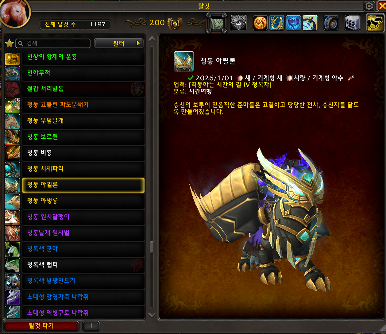 2026.01.01 청동 아퀼론 획득 1197번째 탈것