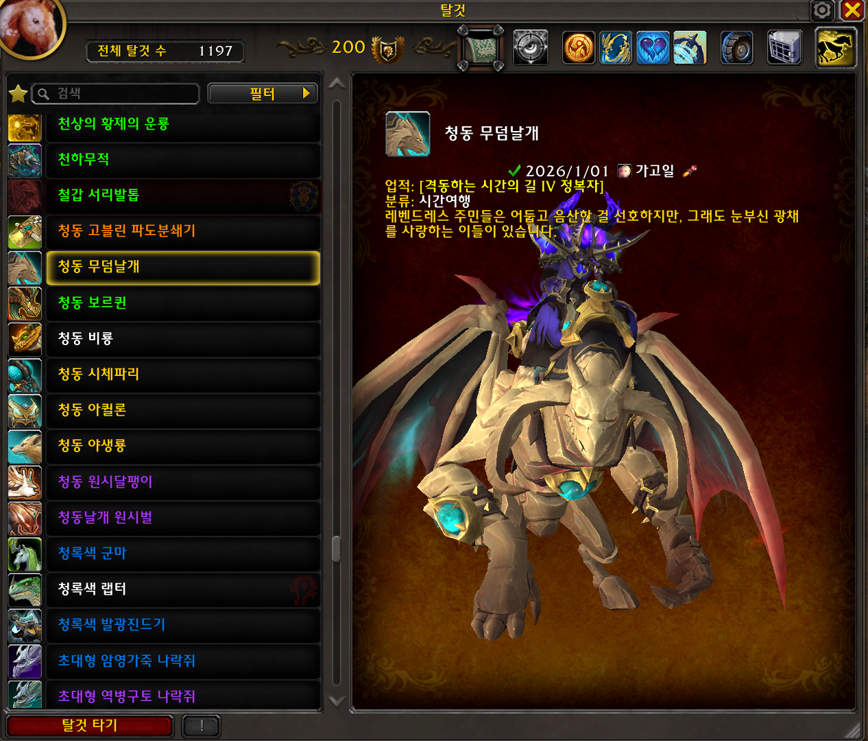 2026.01.01 청동 무덤날개 획득 1196번째 탈것