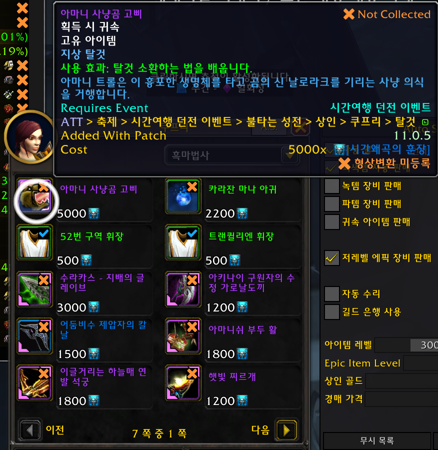 아마니 사냥곰탈것은 내부전쟁 확장팩에 추가된 탈것으로 불성 시던주간에 구매가능한 탈것입니다.