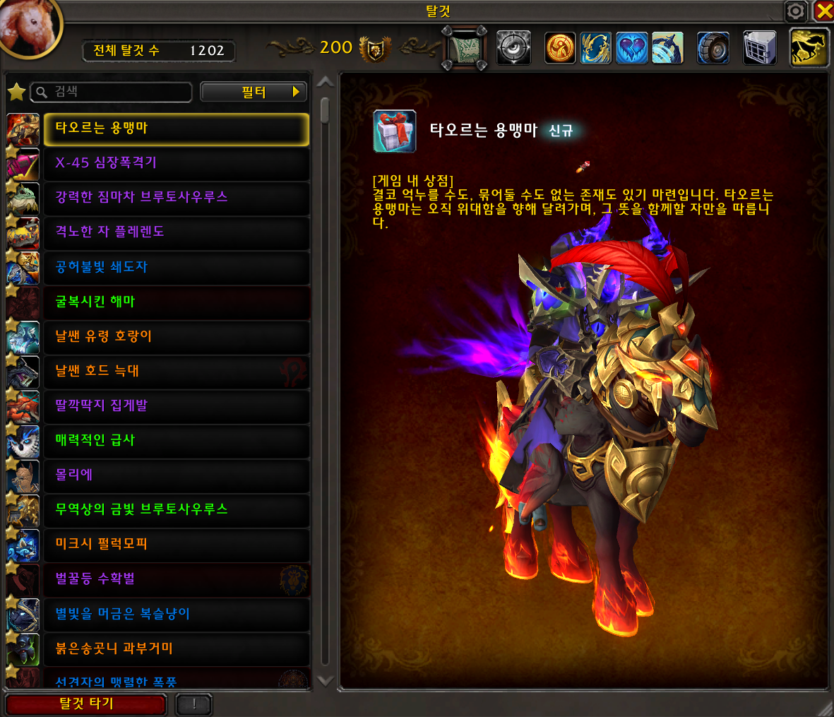 2026.01.14 타오르는 용맹마 획득 1202번째 탈것