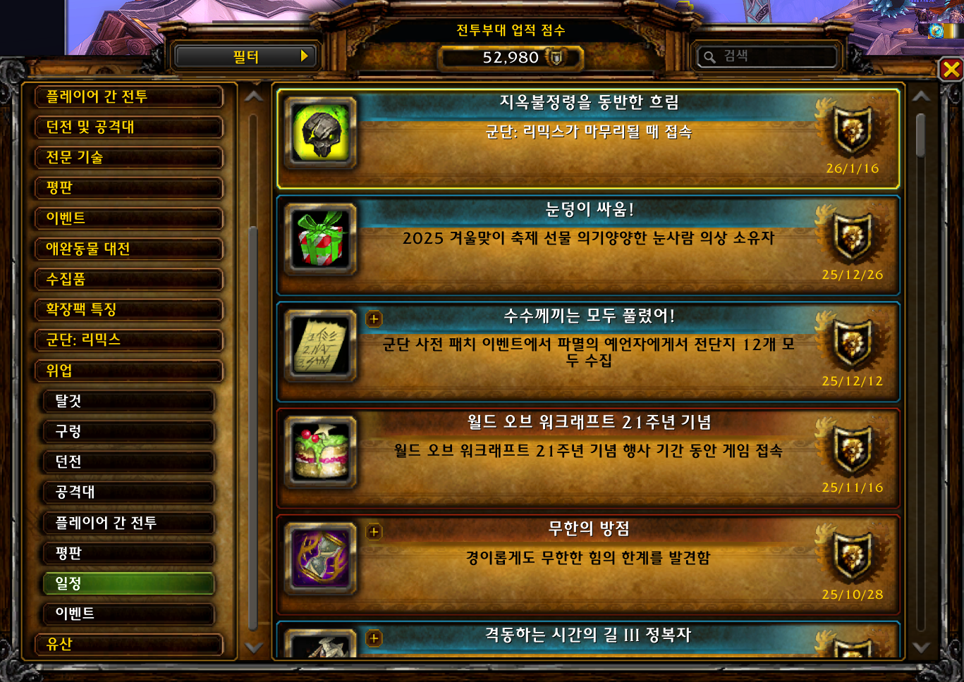 | [와우업적]풀어헤쳐진 던전의 지배자 (0) | 2025.12.03 |