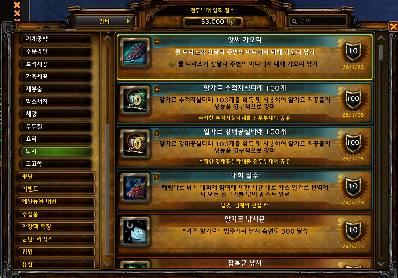 | [와우업적]알가르 강태공실타래 100개 / 알가르 추적자실타래 100개 - 메렐다르대회 졸업 (0) | 2025.01.05 |