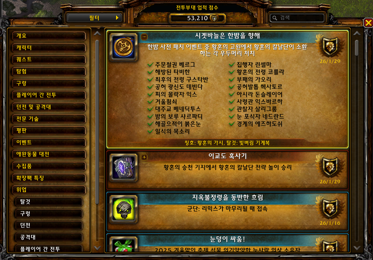 | [와우업적]아름다운 밤이에요 (0) | 2026.01.30 |