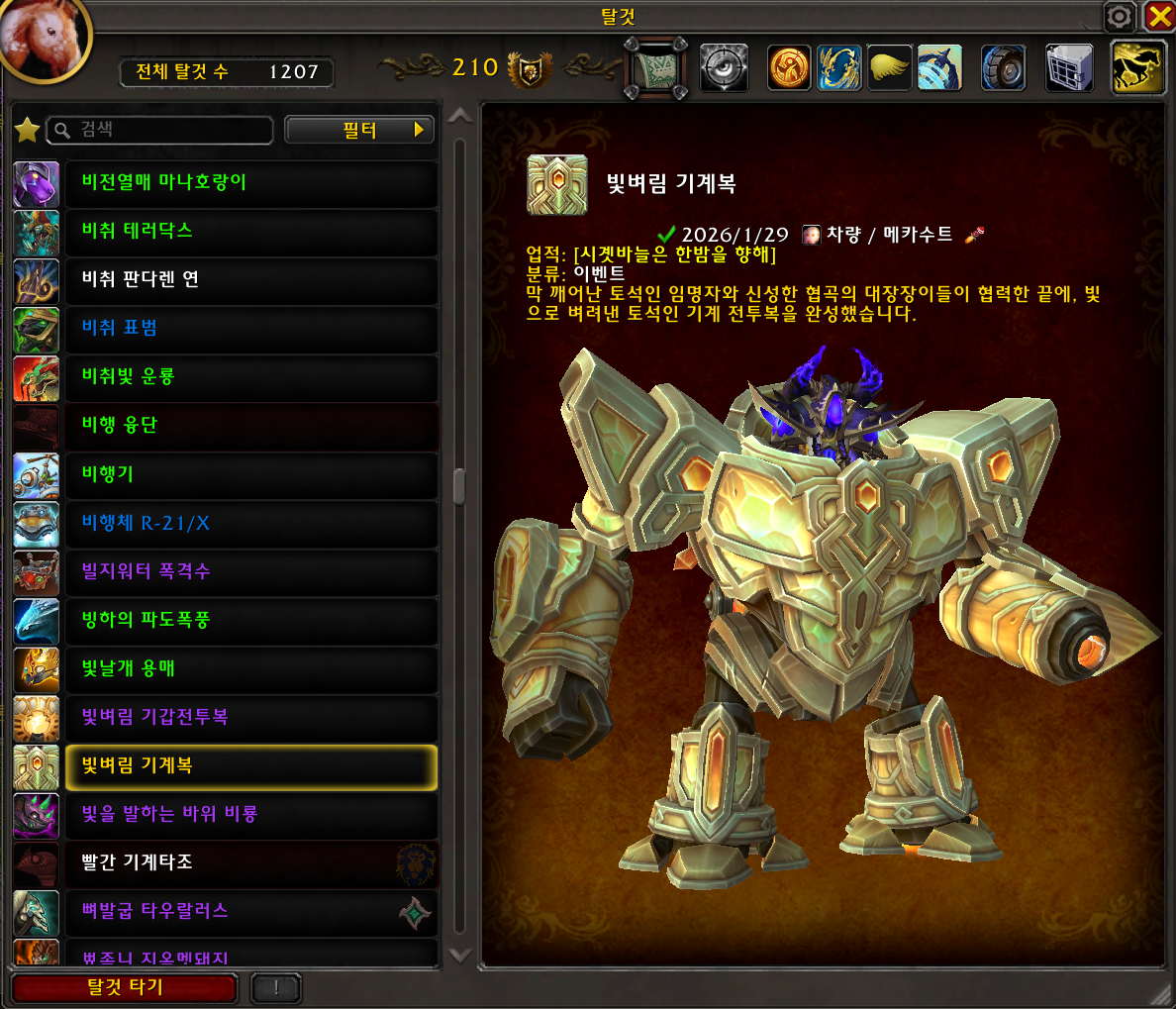 2026.01.29 빛벼림 기계복 획득 1207번째 탈것