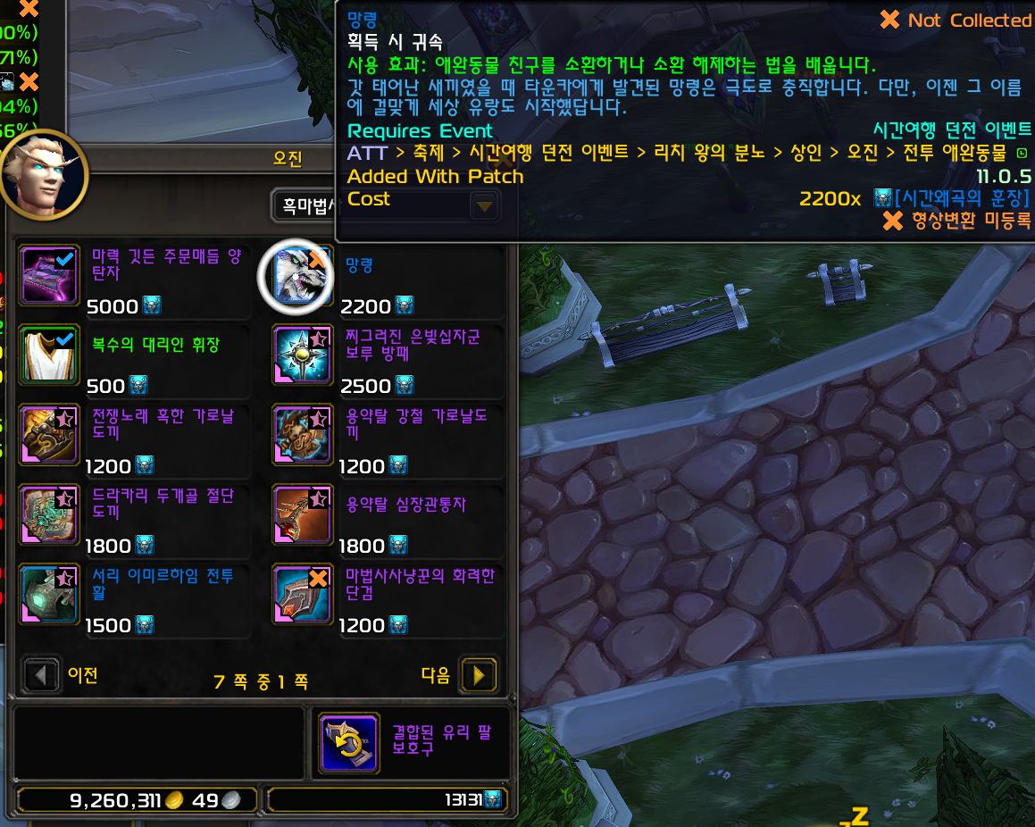 망령 애완동물은 내부전쟁 확장팩에 추가된 애완동물로 리분시던에만 구매가능합니다.